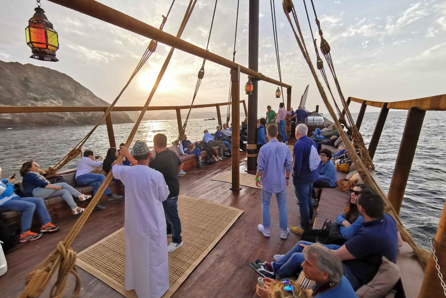 | Départ de l’hôtel à 16h30 Retour à 19h30 Demi-journée | Inclus : - Transferts privés en autocar - Croisière privative en Dhow (2h) sur la côte de Mascate au coucher du soleil - Guide francophone |