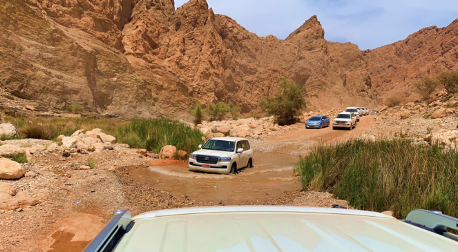 Partez à l’aventure dans votre 4×4 en auto-traction via la route côtière, découvrez les paysages changeants du Sultanat, tout en suivant une route parfaitement asphaltée. Entrez dans l’oued en 4×4 pour un parcours « off road » plein de surprises. Traversez les torrents et admirez la vue à couper le souffle. Une fois arrivés, vous serez invités à vous baigner dans l’oued ou à vous promener dans la nature environnante. Une installation spéciale avec tente, tapis, tables basses, coussins sera mise en place pour un déjeuner buffet préparé par un traiteur local