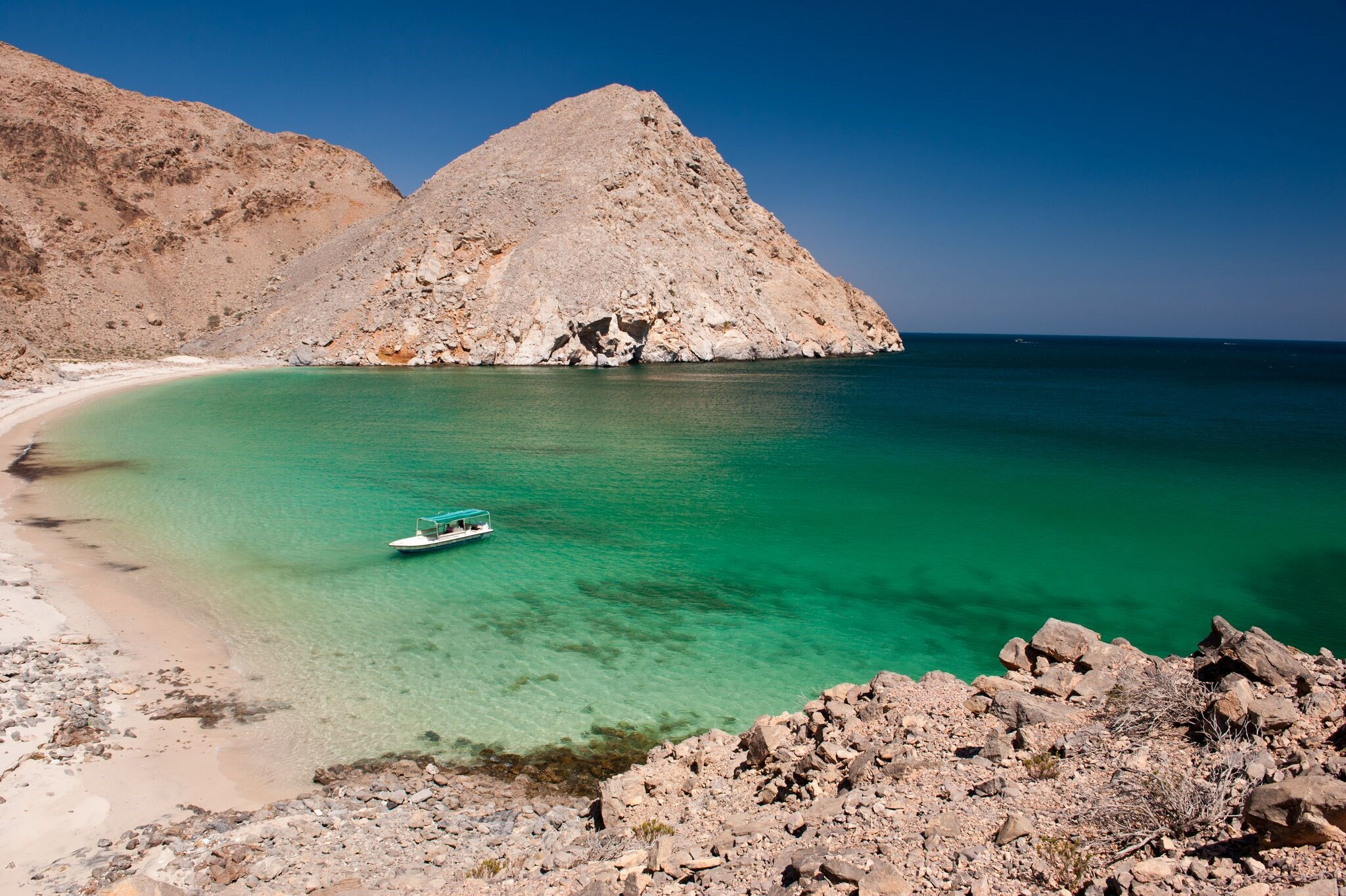 Embarquez sur des bateaux rapides et partez au large de Mascate, si vous avez de la chance, vous pourrez observer les dauphins avant de vous rapprocher de la côte et de découvrir la magnifique baie de Bandar Khairan où vous pourrez vous baigner. Un déjeuner sera installé spécialement pour vous.